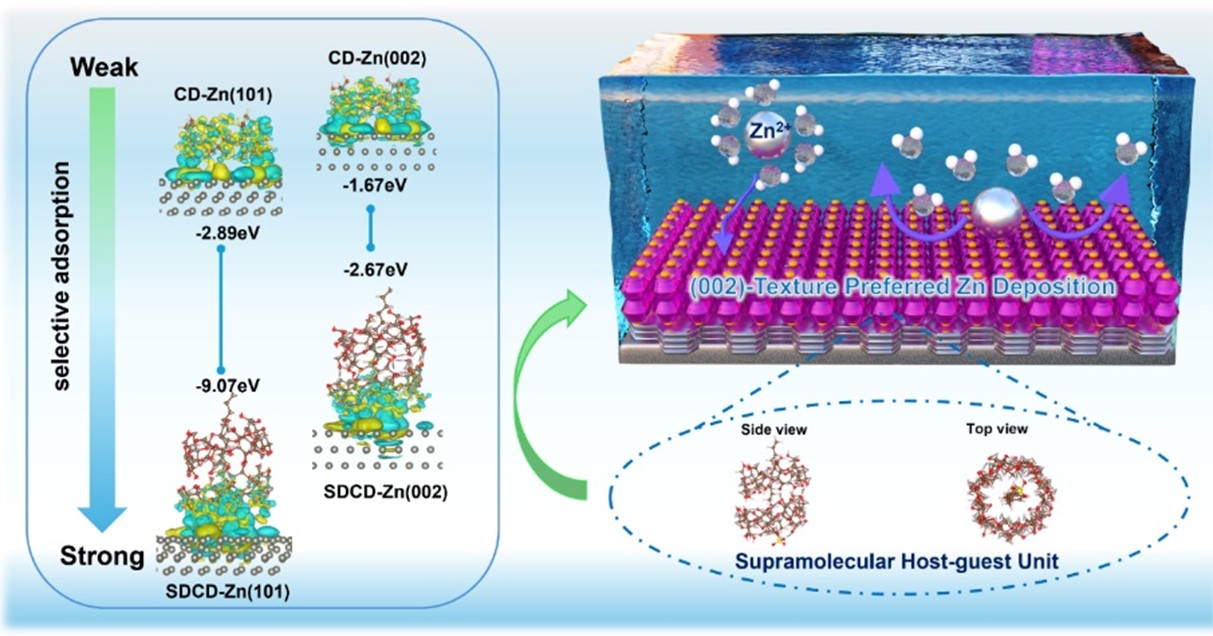 1. 超分子主客体单元协同增强晶面选择性吸附调控(002)织构锌致密沉积