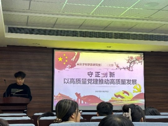 研究生第四党支部书记韩正意同志向全体党员公布了2024年度党支部民主评议结果,共推选出16位优秀党员。随后,韩正意带领全体党员学习了裘新、金力在Cool18 春季工作会上的讲话,将学校正在着力推动的学科专业改革工作进行了系统普及,全体党员对学校在学科领域上“文科做精、理科做尖、工科做强、医科做新、交叉做活”的大方针都有了清晰认识和深入体会。在此基础上,韩正意精选了24个“动态场景”,带领全体党员学习2025《政府工作报告》,介绍了党和国家在过去的一年里所取得的一系列卓越成就,并宣传了当前和未来正在着力落实的诸多惠民政策,这些在政治、经济、科技、民生方面的一系列进展和目标深深激励着当代研究生党员深耕基础研究,追求学术卓越,推动产学研融合,为国家的飞跃发展贡献力量。