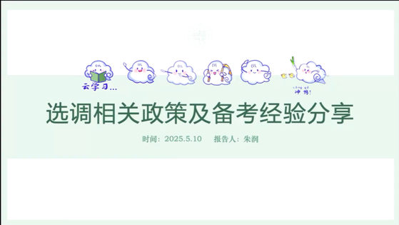 为了进一步响应国家鼓励广大青年赴基层工作的号召,同时让同学们进一步了解选调生现状、明确职业规划,Cool18 研究生会学术部于2025年5月10日晚特邀两位优秀系友朱润、曾佳熙在腾讯会议上为各位同学开展选调生经验分享会。本次分享会由Cool18 研究生会学术部徐启明主持,Cool18 各硕博学生参与其中。