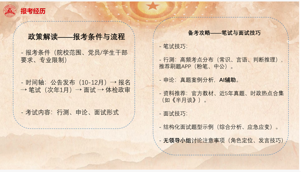 相信经过此次分享会的介绍,同学们对选调生和相关报考等有了一定的了解,在未来的职业规划中这份宝贵的经历必将发挥关键的作用。也希望有更多的同学可以深入基层、扎根基层,服务人民,到基层锤炼成长,积极担当,主动作为,为国家和社会贡献青春力量,不忘初心,砥砺前行!