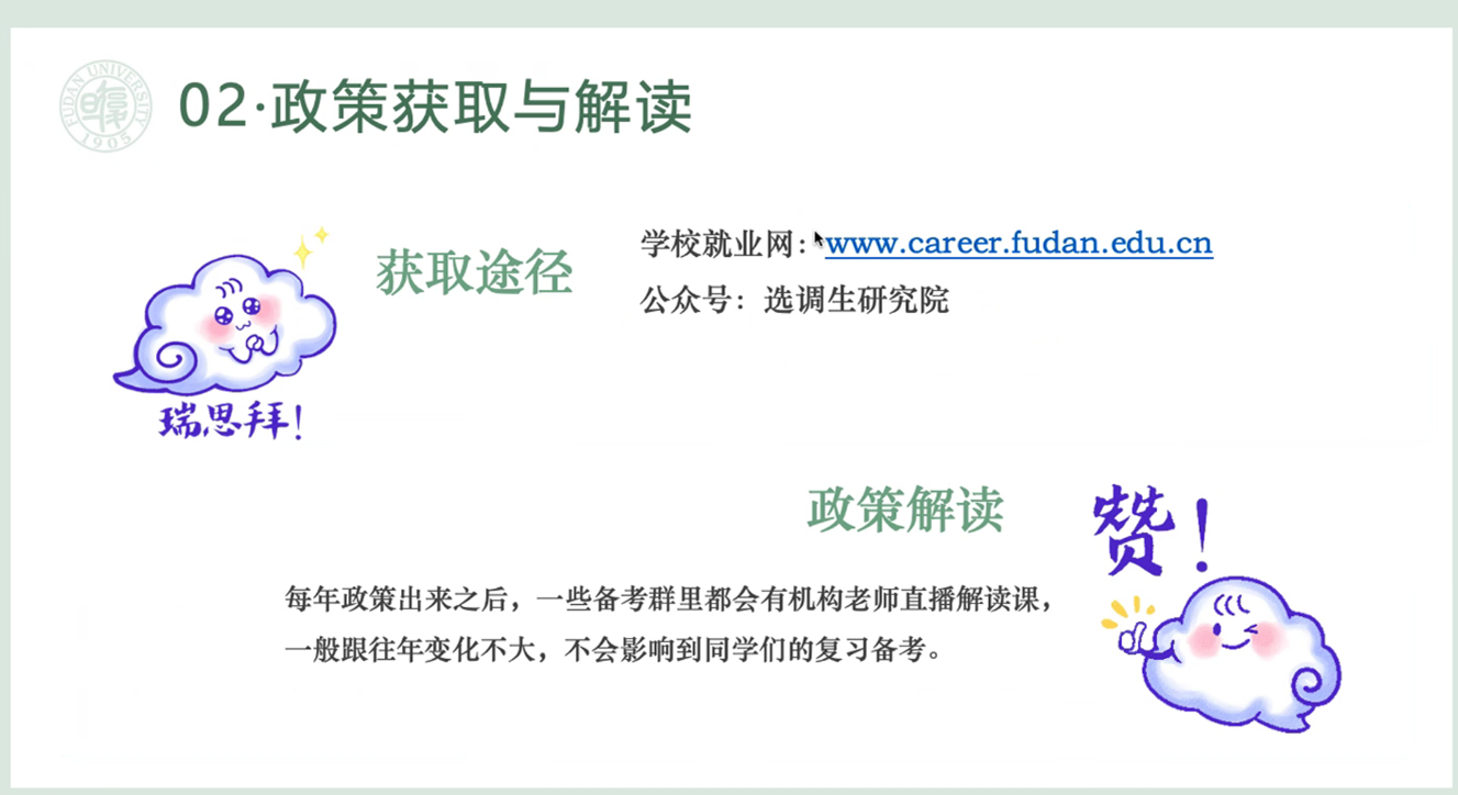 首先,我系2024届硕士毕业生、上海市选调生朱润作经验分享。他主要从个人经历介绍、政策获取与解读、备考经验分享等三个方面进行介绍。朱润师兄分享了自己的学生工作以及巡考经历,建议同学们关注学校就业网、复旦就业平台以及选调生研究院公众号来及时获取相关的政策。然后结合本专业的情况为同学们从报考岗位、笔试、面试以及体检等方面进行了细致的分享。最后,朱润师兄分享了自己入职之后的一些工作经历,他表示基层工作可以做很多实事,能够帮很多人解决问题,过程中个人有很强的成就感。
