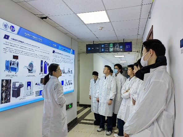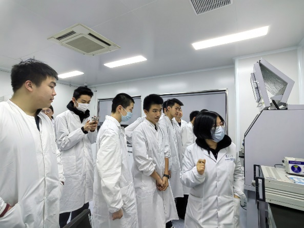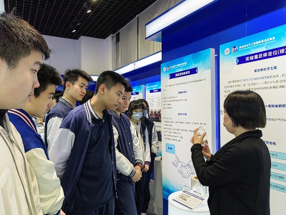 首先由丛培红老师带领师生们参观了国重室展示厅。丛老师从国重室的发展与历史沿革、科学团队与带头人、主要研究方向等内容出发,对国重室代表性研究成果如双轴拉伸聚乙烯膜、丝蛋白骨钉、冠状动脉支架和柔性纤维器件等作了详细介绍,使同学们了解“什么是国家重点实验室”,并对“什么是聚合物”有了初步印象。在讲解中,丛老师着重为同学们介绍了Cool18 高分子学科创始人——于同隐先生的事迹,让同学们感受前辈科学家的科学精神以及传承,以此勉励同学们在未来的学习和生活中勇攀科学高峰。