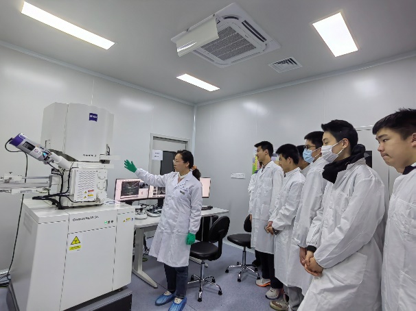 一流的科研工作需要一流的实验技术支撑。为了使师生们了解科学研究基本过程,共享仪器平台主任孙畅老师及多位平台老师为师生们详细介绍了极具聚合物分子工程学特色的共享仪器平台。孙老师从仪器平台概况、仪器管理和上机操作培训等几个方面,系统介绍了共享仪器平台的管理和运行情况。平台目前拥有各种大型仪器设备总值超过2亿元,采取“集中管理、共享开放、持证上岗、有偿使用”的管理模式,最大程度地方便科研人员开展工作,为重点实验室服务国家战略需求提供强有力的支撑。平台多位老师将同学们带入测试间,结合仪器演示生动地向同学们讲解仪器的功能和原理,并现场展示了扫描电子显微镜、原子力显微镜和荧光光谱等高精尖仪器操作,帮助同学们从更多角度理解仪器设备在科学研究中起的重要作用。