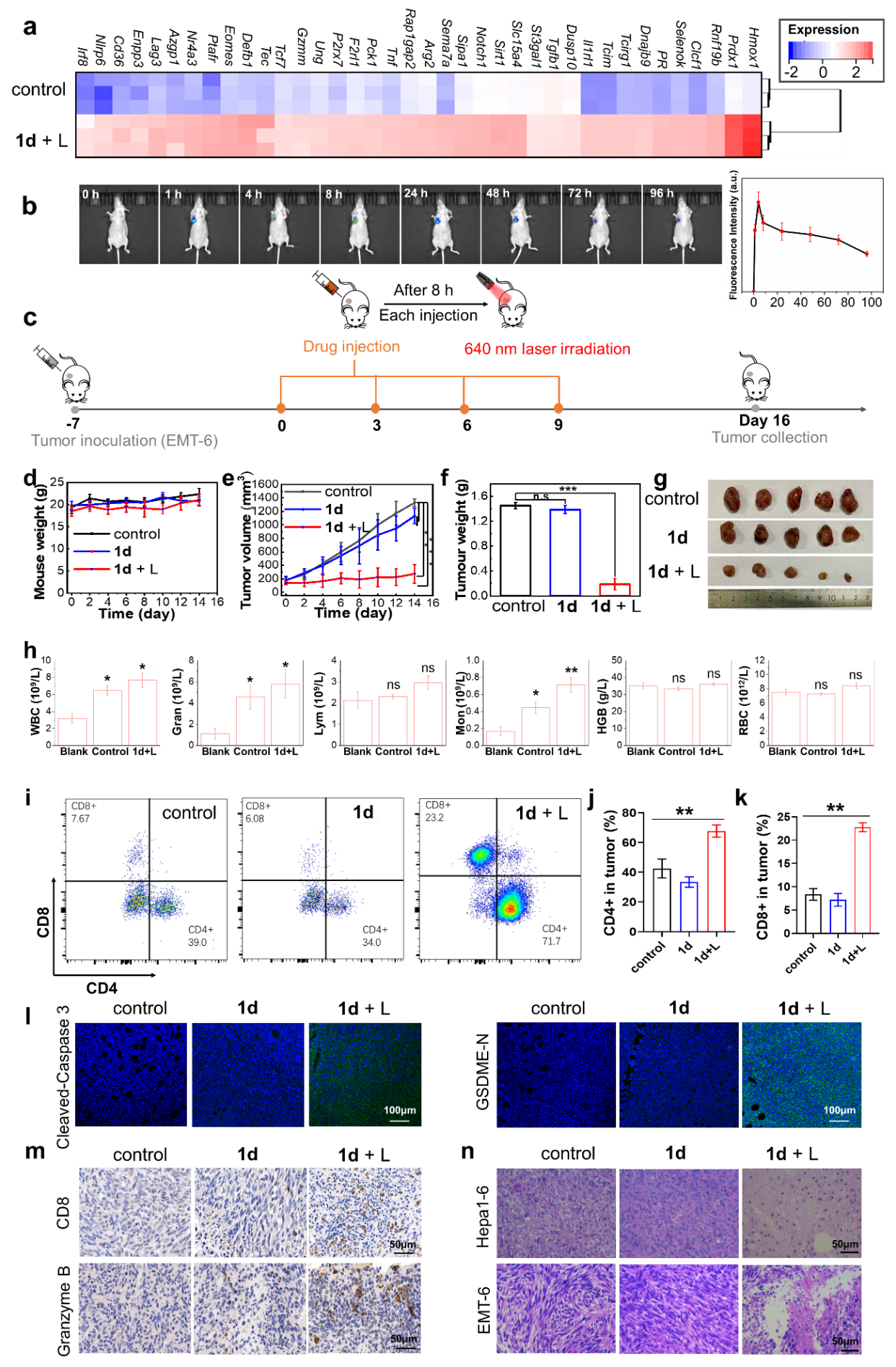 最后作者通过动物实验进一步验证了光焦亡触发了明显的全身免疫响应。