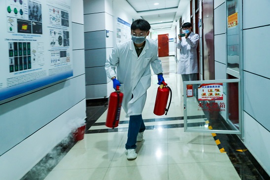 “据实场景式”应急演练的主要目的,就是为了考察学生们在突发事件下的真实应急反应,从而达到练兵的目的,因此演练策划者事前并未给学生任何剧本和台词,只是告知了学生的演练场景,在演练实验室现场安装的3个固定摄像头和2个流动摄像机记录下同学们的真实应急反应,以备复盘的时候由专家针对同学们的应急反应进行点评。