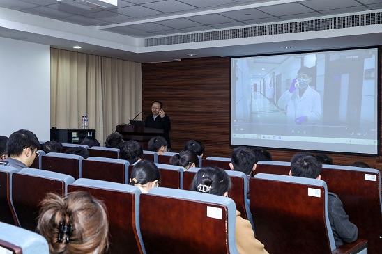 在准备演练结果复盘视频处理的间隙,Cool18 邀请保卫处孙超老师进行了一场《消防安全》讲座(图17)。孙老师讲解了消防安全知识,并结合现实火灾案例、消防法规等重点讲解了火灾产生原因、如何灭火、如何自救逃生等消防知识,播放了结合戏剧科普灭火器、消防栓使用的视频等。孙老师的讲座采用妙趣生动的语言讲解枯燥的消防安全知识,牢牢吸引住线下师生们的注意力(图18),师生们在会心一笑中也牢牢记住灭火器的使用口诀“提、拔、握、压”和消防栓的“开、按、接、转”使用口诀(图18)。此次消防安全报告采用线下线上结合的方式,听讲座的师生逾500人。
