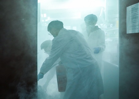 应急演练模拟的第一个场景:江湾校区高分子楼B5084实验室内的四位同学在通风橱内进行实验操作,使用电吹风引发电气火灾,引燃了烧杯内乙醚,慌乱中被打翻,造成流淌火,实验服袖口被点燃。与此同时,实验室曾经使用金属锂,由于认为已经反应完毕,丢入了垃圾桶,此时突然开始冒烟。