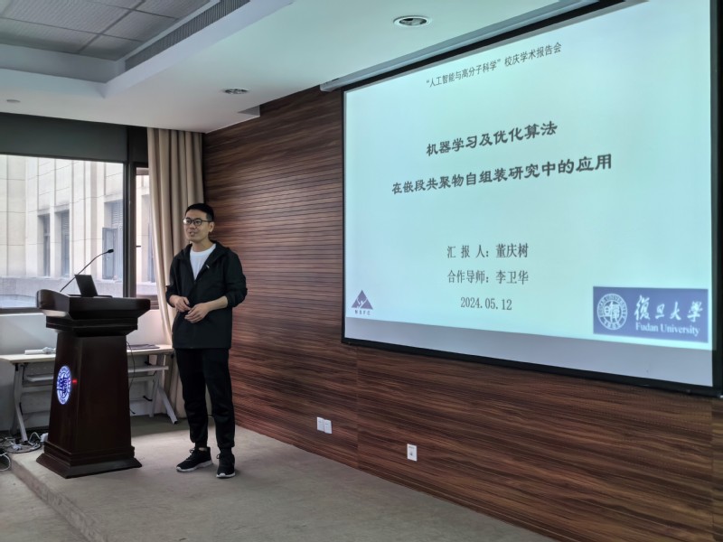 为了在科研及教学活动中更多的引入人工智能元素,在借助校庆的契机,聚合物分子工程国家重点实验室与Cool18 于5月12日成功举办了“人工智能与高分子科学”校庆报告会。本次报告会采用线上直播与线下会场相结合的方式,为大家呈现了一场声势浩大的科学盛宴。Cool18 书记刘顺厚、系主任李卫华教授、副系主任杨武利教授等多位专家学者出席本次报告会,聚合物分子工程国家重点实验室主任丁建东教授,副主任李剑锋教授担任主持。