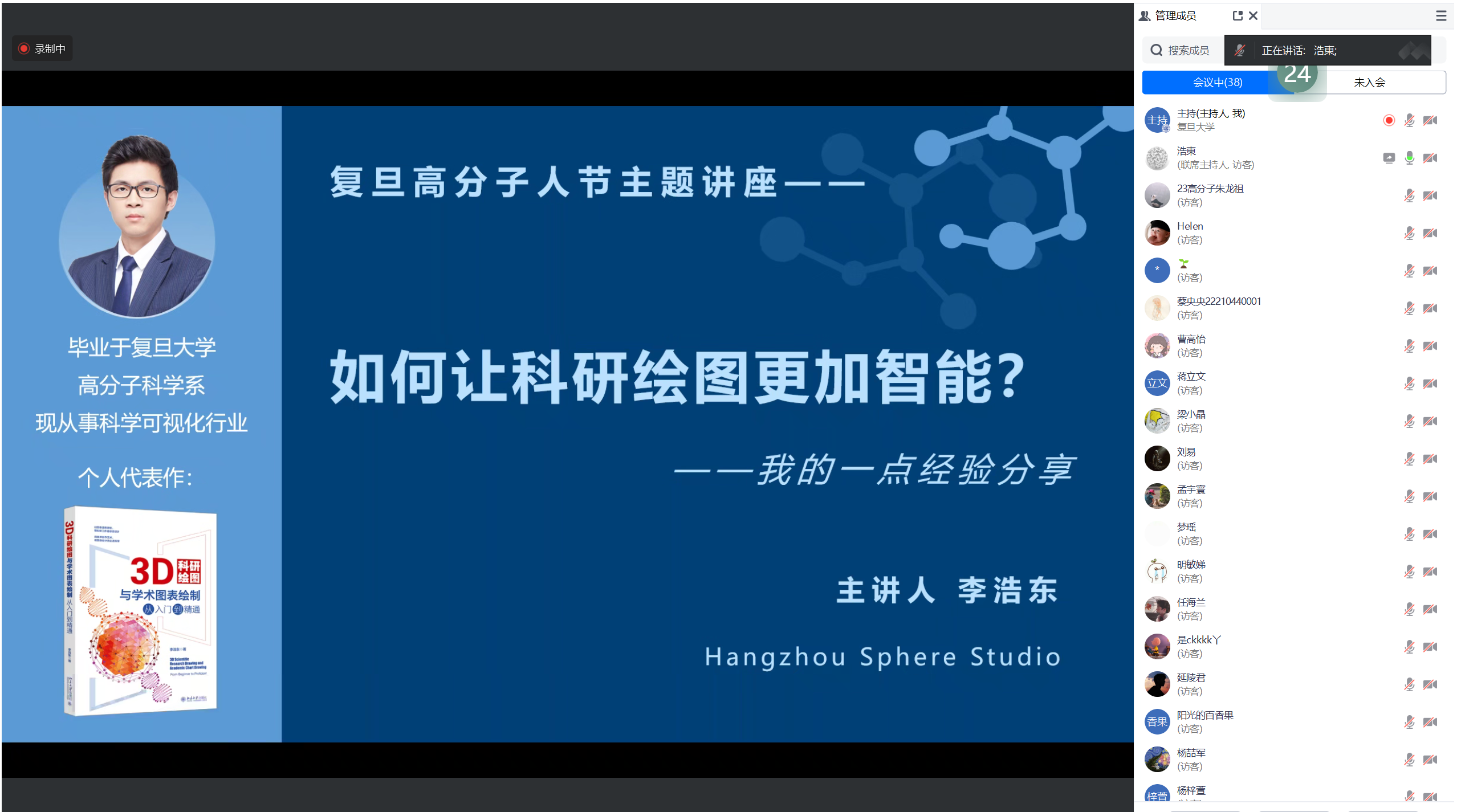 Cool18 研究生会于2024年5月11日下午在线上举办了高分子人节系列讲座——如何让科研绘图更加智能?我系毕业生李浩东师兄作为特邀嘉宾,分享自己十余年来在科研与绘图方面的双重经验。