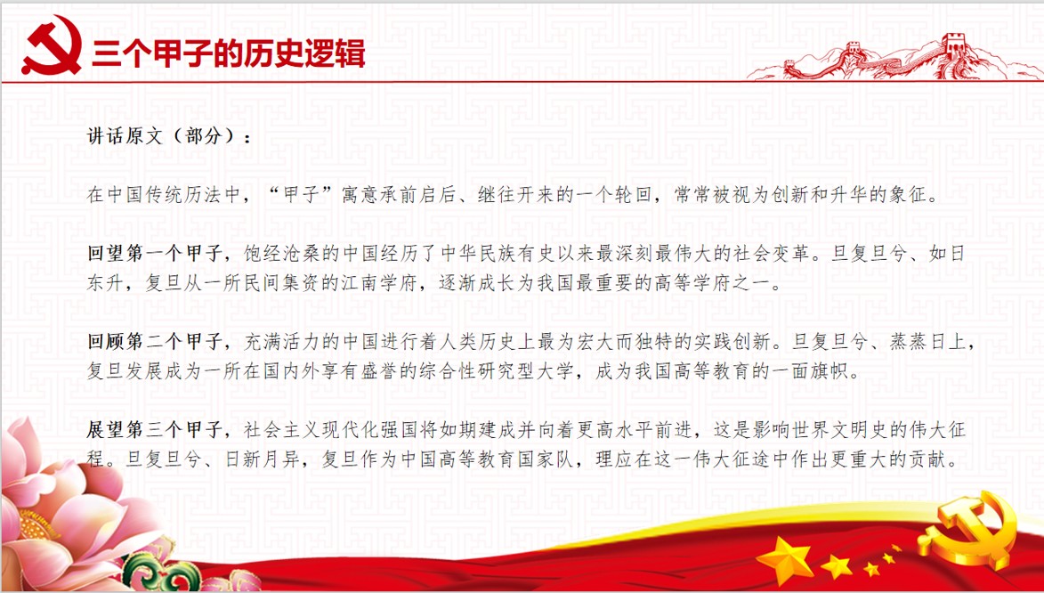 研究生第三党支部支部书记郑浩同志带领支部同志开展理论学习,他提到“创新是复旦与生俱来的基因”、“创新型大学要为人的创造性发展提供无限可能”等内容,接着带领大家线上集体观看了Cool18 120周年校庆金力校长讲话,学习讲话中“三个甲子的历史逻辑”、“创新基因的文化内核”、“创新型大学的实践要求”三大核心要点,并结合校史馆线上资源,简要梳理讲话中“历史-现实-未来”的逻辑主线,强调“创新是贯穿双甲子的不变主题”。随后,支部宣传委员欧凯琴同志总结了如“创新是复旦与生俱来的基因”“创新型大学要为人的创造性发展提供无限可能”“突破边界需要改革的勇气”等相关金句,分享给全体支部党员共同学习。