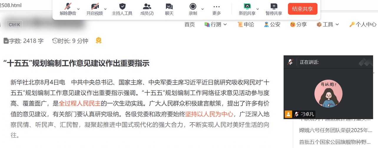 研究生第二党支以“从科技创新到落地”为组织生活主题,紧密结合时政热点和科研实践,对国家科技发展战略、经济建设、国防安全及社会发展等方面的重要进展进行了深入学习与交流。党支部书记刁卓凡介绍了科研团队在量子通信领域取得的最新突破,充分体现了我国在前沿科技领域的创新能力和自主研发实力,回顾了西藏自治区成立60周年的重要历史意义及成就,并讨论了即将举行的阅兵,反映国家综合实力与安全保障水平。