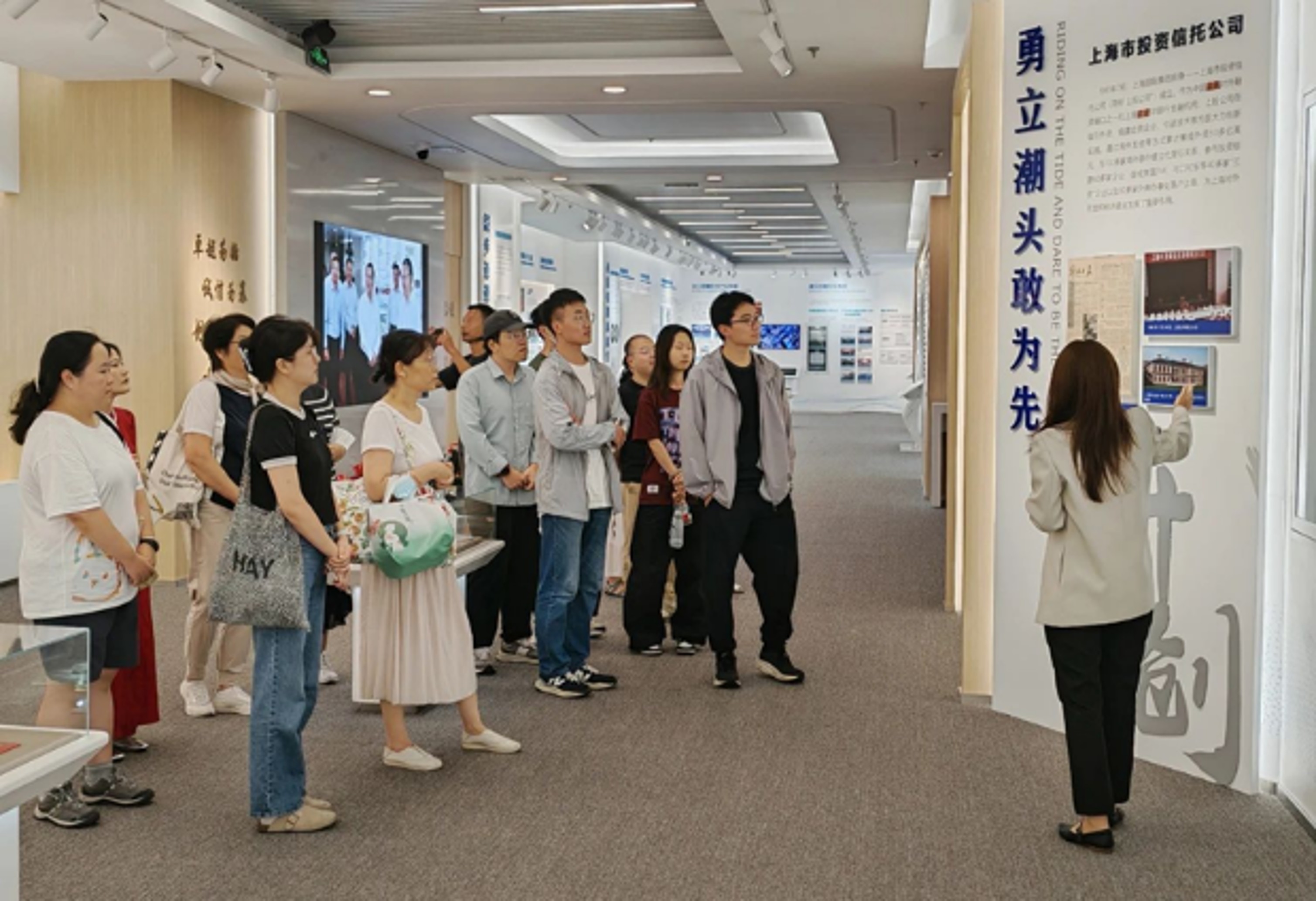 首先,党支部书记秦业栋同志为支部全体成员介绍了党支部实践团队暑期前往上海国际集团有限公司参观学习的实践经历,实践团队通过参观集团发展历史陈列室,深入了解了集团的发展历程,近距离感受上海国际集团40年来的发展脉络。同时借助“红色文化进国企”的主题展览,系统了解到了上海国资国企发展进程和工商业、金融业变迁过程,感受到上海丰富的红色文化与集团蕴含的红色血脉,从中汲取到丰富的精神力量。参与本次实践的明敏娣同志作为代表,向大家分享了自己的活动感想。她认为中国式现代化并非抽象蓝图,而是如陈列室中展示的那般为国企注入能量,上海国际集团的发展历程清晰印证国家“深化国企改革”的战略引导,打破传统,在金融投资、资产管理等关键领域布局,从而服务实体经济。