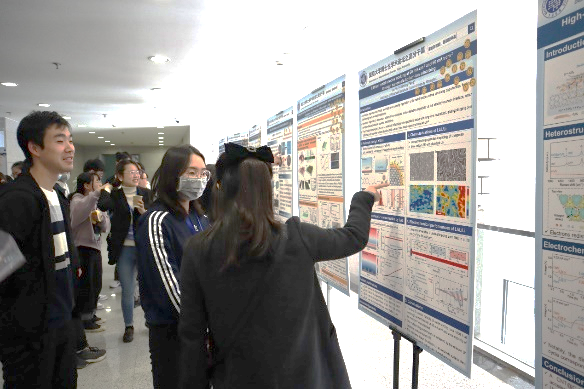 随后,论坛进入了茶歇和墙报展示交流环节。各位评委与观众共同来到先进材料楼二楼进行墙报学术交流。期间评委及现场观众打分,共评选出最佳墙报奖10名。茶歇环节结束后,Cool18 汪群松、张鑫饶、张艳三位同学就聚合物封堵器、硅基纳米颗粒等领域做了相关汇报,Cool18 俞麟老师高度肯定了三位同学的科研工作并鼓励大家要继续再接再厉,勇攀科研高峰。