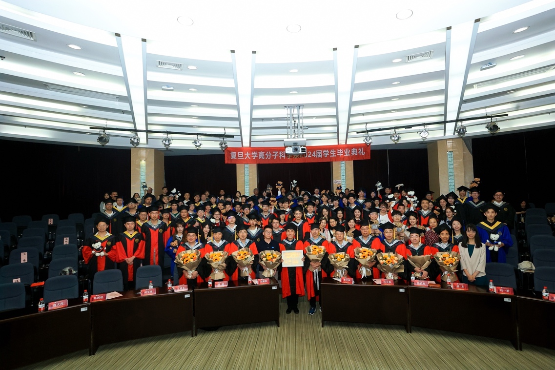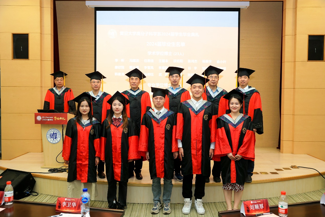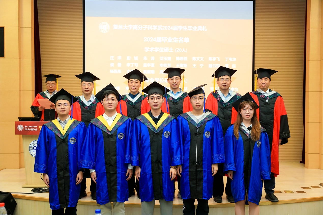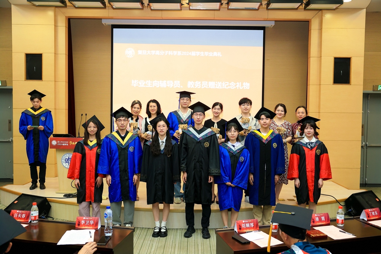 在庄严的学位授予仪式上,系党委书记刘顺厚、系主任李卫华、系学术委员会委员汪长春、何军坡以及聚合物分子工程国家重点实验室主任丁建东为全体毕业生拨穗,副系主任杨武利宣读2024届毕业生名单。