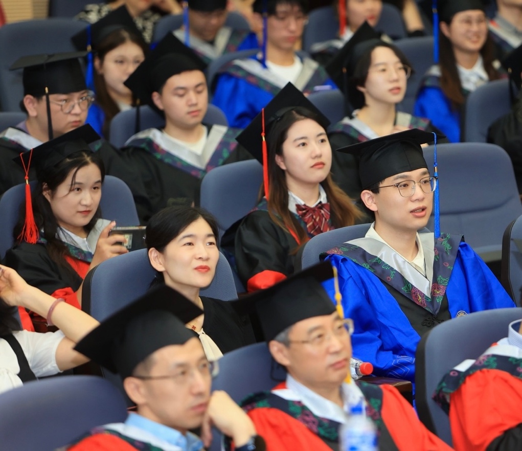 在庄严肃穆的国歌声中,毕业典礼正式拉开帷幕。全体师生与嘉宾们共同观看了由2024届毕业生拍摄制作的毕业风采纪念片,重温了高材生们在校学习、科研与生活的点滴时光,展现了他们成长的足迹与收获的喜悦。毕业生们借此机会向辛勤付出的院系老师和母校表达了深深的感激之情。此外,学生导师和辅导员们也在短片中寄予了最真挚的祝福与殷切的期待。