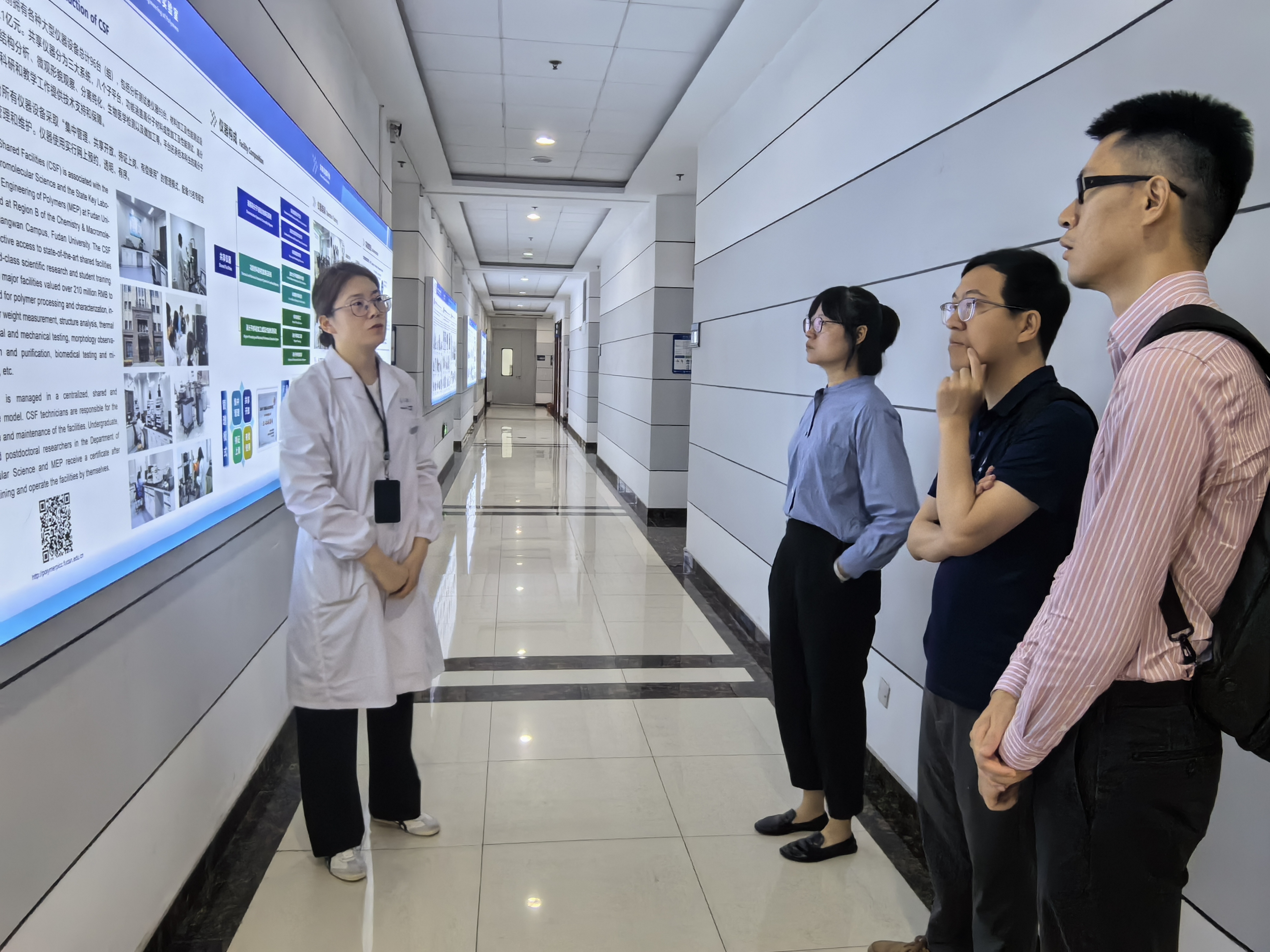 随后,共享仪器平台的主任孙畅老师向其一行介绍了当前平台的仪器配备、管理模式和服务理念,并带领他们参观了活体小动物检测相关实验室。