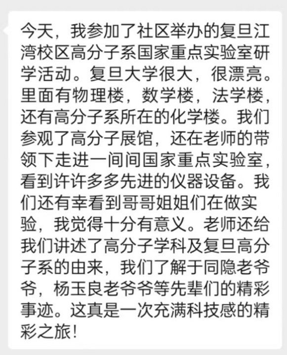 7月15日,上海市虹口区凉城新村街道复旦居民区一行约50人来到Cool18 和聚合物分子工程国家重点实验室,开展“弘扬科学家精神、探寻高分子魅力”的暑期亲子参访活动。