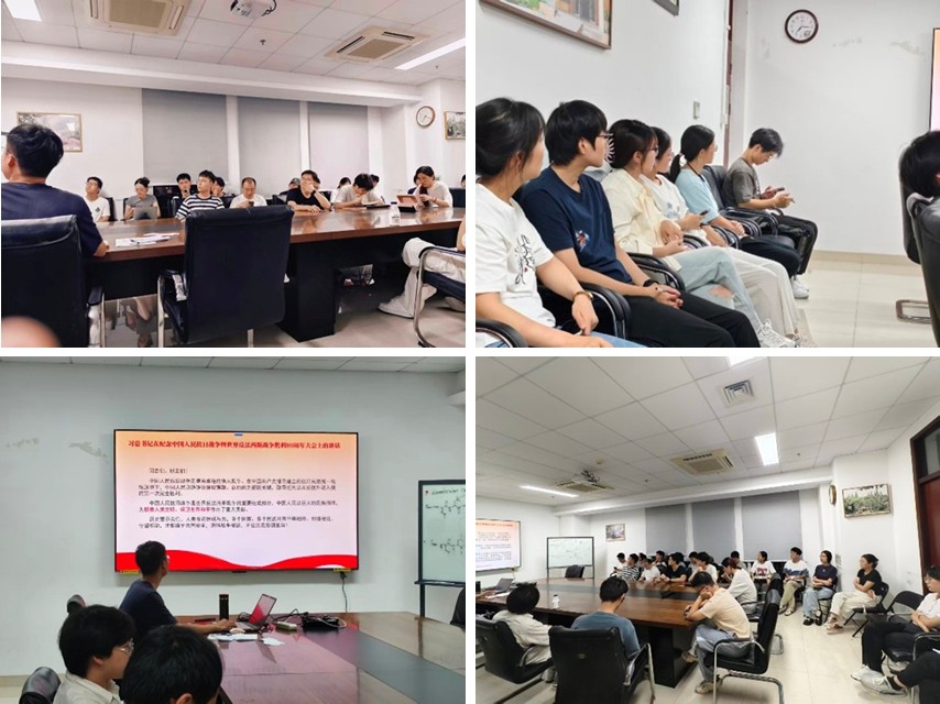9 月3日,纪念中国人民抗日战争暨世界反法西斯战争胜利80周年大会在北京天安门广场隆重举行,习近平总书记发表重要讲话。为深入学习习近平总书记重要讲话精神,弘扬伟大抗战精神,汲取奋进力量,Cool18 各研究生党支部开展以中国人民抗日战争暨世界反法西斯战争胜利80周年纪念大会为主题的组织生活,激励全体研究生青年党员为迎接中国式现代化浪潮,全面推进强国建设、民族复兴伟业而团结奋斗。