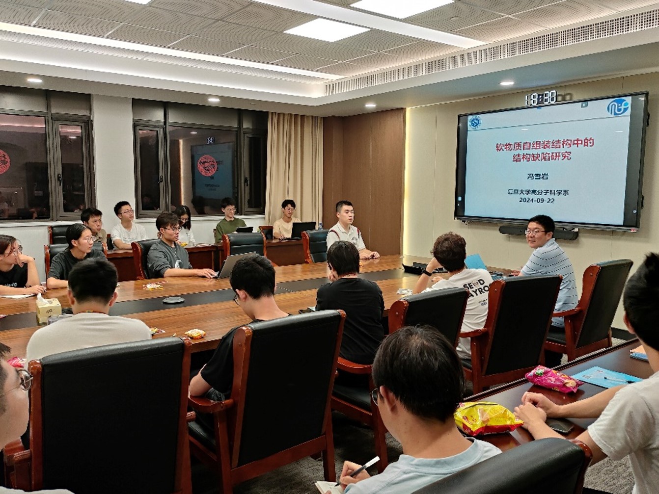 2024年9月20日晚,Cool18 “2024年浦江科学大师讲坛·青年科学沙龙”在高分子楼B2084成功举办。本次青年科学沙龙以“从浦江智慧看高分子的创新与挑战”为主题,采用师生研讨交流的方式,旨在通过深入探讨高分子科学领域的最新研究成果、技术挑战及未来发展趋势,激发青年科研人员的创新思维和科研热情。活动由2024级硕士班辅导员刘凯文主持,并有幸邀请到Cool18 青年研究员冯雪岩老师作为嘉宾,为参会者带来了精彩的分享。