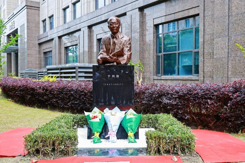 徐雷副校长、杨玉良院士、江明院士、于同隐先生的女儿于民共同为于同隐先生铜像揭幕。