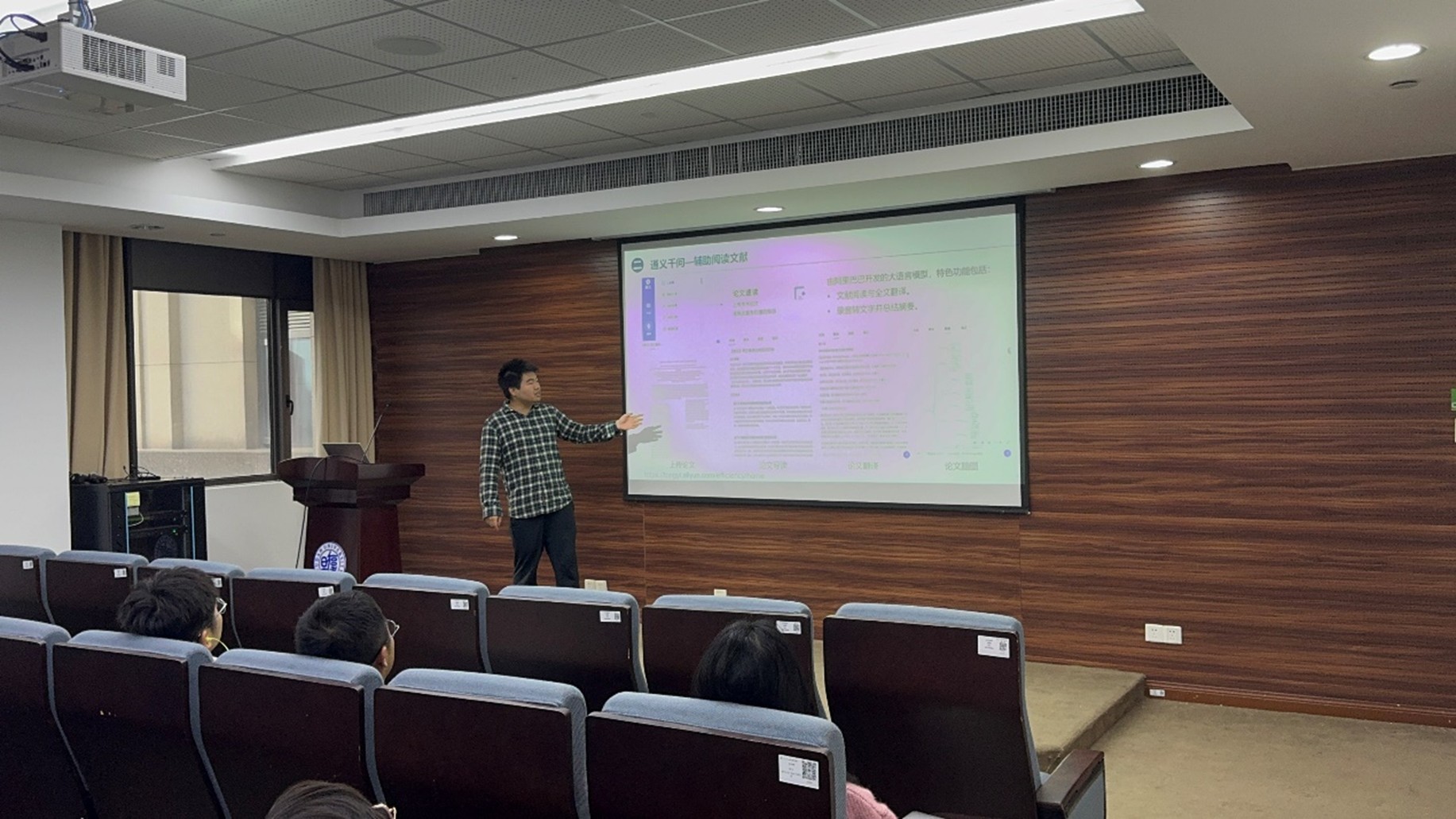 在班会的下半场,Cool18 研究生会主席王纪峰同学带来了题为《AI助力科研——开启智能研究的新篇章》的精彩报告。凭借丰富的科研经验和前沿视野,王纪峰生动展现了人工智能在科研领域的无限潜力与广阔应用蓝图。他详细介绍了AI在科研文献检索、高效数据处理、精准模型构建及创新实验设计等方面的显著优势,并通过国内外多个成功案例,为同学们勾勒出一幅AI赋能科研的壮丽图景。