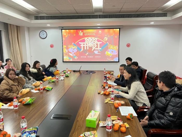 茶话会上,刘顺厚老师向留校学生表示关心,细致了解在校同学在学习生活上遇到的困难,并叮嘱同学们假期一定要注意安全,要以崭新面貌充实自己,过一个有意义的春节;王芳老师详细询问了同学们的留校原因以及假期安排,强调大家一定要遵守疫情防控要求,做好个人防护和卫生清理,假期要劳逸结合,常与家人朋友联系,保持良好的心态。辅导员高悦老师则从自身经历出发,和大家讨论了在异地过年减轻孤独感最好的方法就是充实自我。茶话会上师生其乐融融、交谈甚欢,收获了满满的喜悦与祝福。