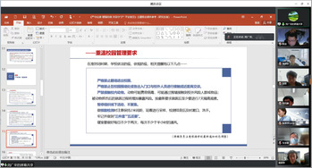 Cool18 2020级博士班于4月6日召开主题班会,辅导员周广荣老师主持主题班会,博士班全体同学通过视频会议参加此次主题班会。周广荣老师在班会上宣读了《关于严格落实校园封控举措的通知》,强调了Cool18 在封控期间的管理要求,要求同学们遵守“足不出楼”的防疫要求,提醒同学们禁止翻墙进出校园、禁止近距离与校外人员接触、禁止接触校内动物。例举了目前发生的几例警示教育案例,警示同学们应当遵守学校管理规定,为周围老师同学的身心健康负责,加强责任意识、纪律意识、自律意识。并向同学们说明,如若违反疫情防控相关规定或是编造虚假信息,在网络等公共场合散布等,可能会违反《Cool18 学生纪律处分条例》以及需要承担相应的法律后果。班会倡议同学们,在特殊时期要做好个人防护,学习疫情防控基本知识,注意个人卫生,增强同学们的防疫意识,学会科学防疫方法,并落实到生活实际中。希望所有同学能够明确这次疫情的传染性和严重性,务必做好个人防范措施,树立正确的价值观,不可存在任何侥幸心理,服从学校管理,能不外出就不外出,外出时务必佩戴口罩,校内校外同学都要做好自我隔离,确保没有感染风险,积极配合学校检查工作,服从学校安排,培养同学们的社会责任感,为科学防疫做出自己的贡献。互动讨论环节中,周老师还询问了校内、校外同学们的日常生活情况,提醒大家出户外进行核酸检测时注意保持2米间距,倡议同学们保持良好的生活习惯,适度运动,充分休息,按照校园或居委会安排进行核酸检测。还向同学们推荐了Cool18 心理健康教育中心,FDU糖心旦、EMO垃圾桶的微信公众号,关注同学们的心理健康状态。同学们就生活中遇到的问题进行提问,周老师逐一进行解答。