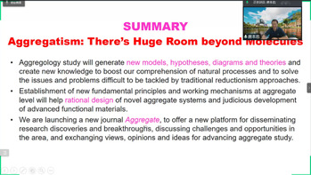 最后,唐老师结合具体事例总结了聚集体论中的拮抗论、协同论、涌现论、多元论等范式,阐明了这些范式对聚集体研究的指导作用。唐老师指出“分子之上即为聚集体”,聚集体的研究还有很多工作可做,这方面的研究将产生新的规律、模型、假设和理论,并能够解决一些传统分子论思维所难以解决的问题。在聚集体层面建立新的基本原理和工作机制,将对设计新型先进材料具有重要指导意义。