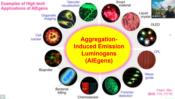 随后,唐老师基于从聚集体的结构到性能的逻辑详细讲解了AIE现象的诸多具体应用实例及其各自的实现原理。唐老师结合自己课题组近年来的工作,展示了AIE从诊疗一体化、光热治疗、海水淡化到碳达峰、碳中和等多领域的巨大应用前景,让同学们了解到了AIE的研究前沿及其应用潜力。