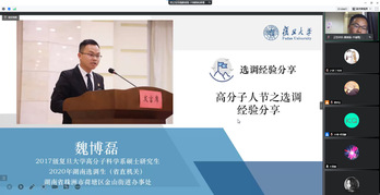 魏博磊师兄为我们分享了他在成为选调生后的充实而丰富的基层经历,包括:担任村书记助理、在街道党政办、党建办轮岗等。师兄在人口普查工作、社保信息核查和抗击疫情等工作中都做出了相当成果,也为同学们展示了详尽的工作内容和工作时的不易。师兄对自己基层一年多的工作也进行了总结:①深入一线,当好战斗员;②紧扣主线,当好服务员;③签好红线,当好联络员。随后,师兄着重对湖南省选调生的选拔要求和录用情况进行了介绍,让我们对湖南选调生的选拔要求和流程有了更多的了解。魏师兄还提到成为了选调生也可以继续发挥理工科研究生的优势,充分利用好身边的各种资源,更好地为基层工作服务。