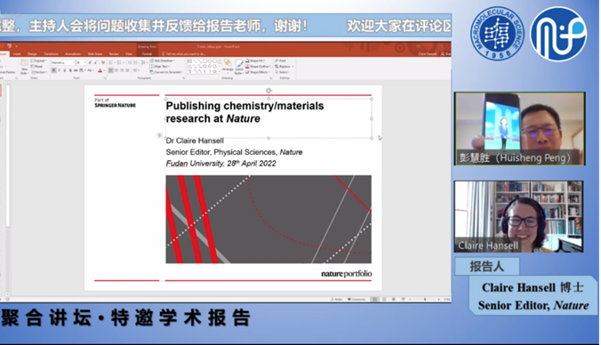4月28日,Cool18 特邀了《自然》期刊资深编辑 Claire Hansell 博士参加聚合讲坛第八辑,作主题为“Publishing Chemistry/Materials Research at Nature”的精彩报告。本次报告由系主任彭慧胜教授主持。