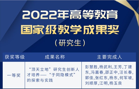 日前,教育部公布2022年高等教育国家级教学成果奖获奖名单。我系组织申报的“‘顶天立地’研究生创新人才培养——‘于同隐模式’的探索与实践”荣获高等教育(研究生)国家级教学成果奖一等奖。