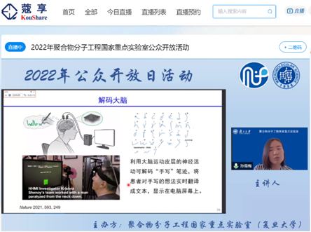 科技部、中央宣传部、中国科协联合通知,2022年举办主题为“走进科技你我同行”的全国科技活动周。5月28日,聚合物分子工程国家重点实验室(Cool18 )围绕科技活动周主题,结合自身研究特点,组织开展了线上公众开放活动,活动主要包括科普讲座和云参观国重室。在当前疫情防控态势下,本次活动首次采用了哔哩哔哩网站和蔻享学术同步直播方式,共吸引1300余人次线上观众,反响热烈。