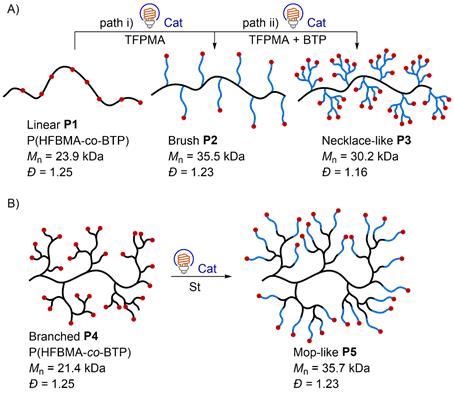 2. 通过光催化调控的“多样化”的可控自由基聚合合成各种拓扑结构的含氟聚合物.