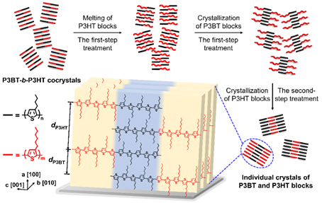 图3. P3BT-b-P3HT共晶到微相分离各自结晶的示意图