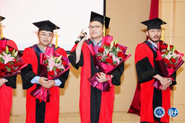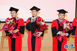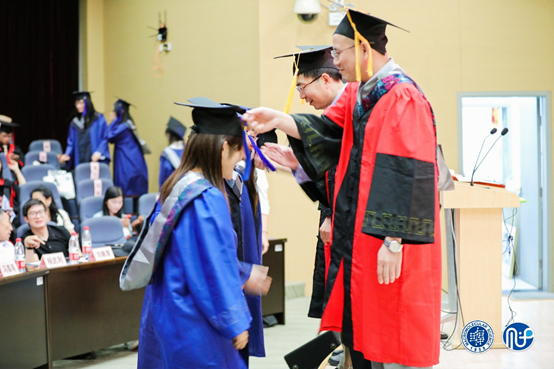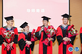 随后,毕业生们为导师代表献花,感谢导师们的悉心栽培与谆谆教诲,导师们也纷纷表达对毕业生的期许与祝福,其中周平老师深情地朗诵了一段自己创作的“三字经”:“心向善,行向律,言向乐,则健康;有责任,勇担当,广胸怀,则充实;展智慧,施勤奋,握机会,则富有”,让同学们久久难以忘怀。