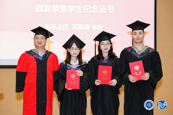同学们在校数载,成果斐然。系党委书记刘顺厚宣读了优秀毕业生名单,并为上海市优秀毕业生赠送纪念品。副系主任冯嘉春宣读本科“拔尖计划”荣誉学生名单并颁发纪念证书。