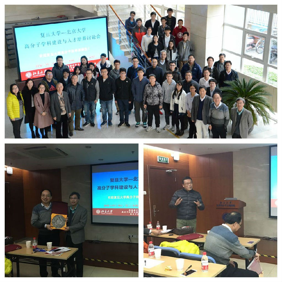 11月19日上午,师生一行首先来到北京大学化学与分子工程学院开始此次学习交流活动,北大化学与分子工程学院高分子科学与工程系主任李子臣教授向我系师生致欢迎辞,我系何军坡老师介绍我校Cool18 拔尖人才计划培养方式。何老师讲到北大化学为复旦高分子的发展提供了很大的支持,两校的文化也有很多共通之处。北大与复旦的老一代高分子人之间有很多的合作与交流,并希望两校高分子学科的交流能够一直传承发展下去。