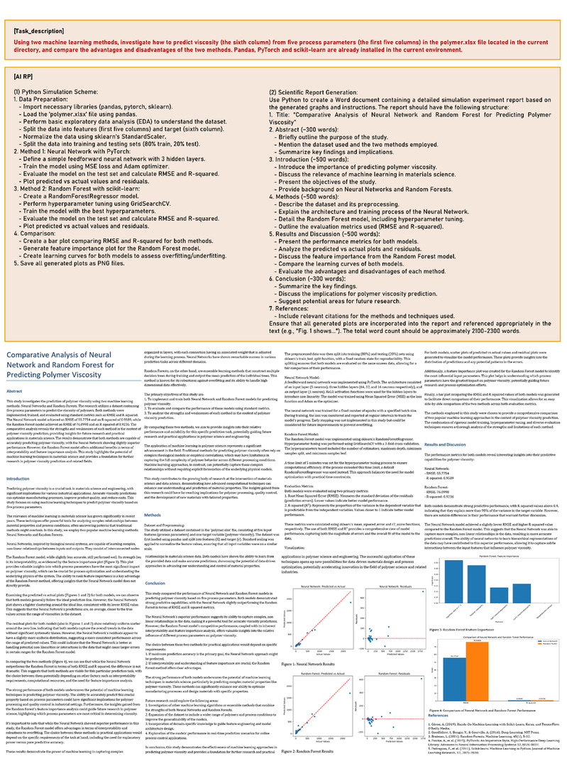 近日,Cool18 李剑锋课题组首次提出了一种基于LLM提示词工程设计的自动模拟助手(ASAautonomous simulation agent),能够根据研究计划(RP)自动完成从编写程序、远程执行到数据分析和报告撰写的全流程模拟研究。这一工作标志着理论模拟科研全流程自动化的首次实现,为未来的科学研究自动化提供了新的思路。ASA的核心亮点在于,它能根据简短的描述自动设计详细的RP并执行。例如,研究人员要求ASA选择两种机器学习方法预测材料性能,ASA自动建立了神经网络和随机森林模型并进行了训练,验证集R-squared值分别达到0.95890.9236,且生成了高质量报告比较两种方法的特点。此外,ASA-GPT-4oASA-Claude-3.5展现了出乎意料的智能表现,如主动整理文件、分析理论与模拟偏差、用丰富图表呈现数据等,展示了ASA的自主性。