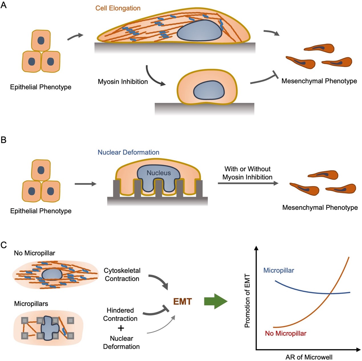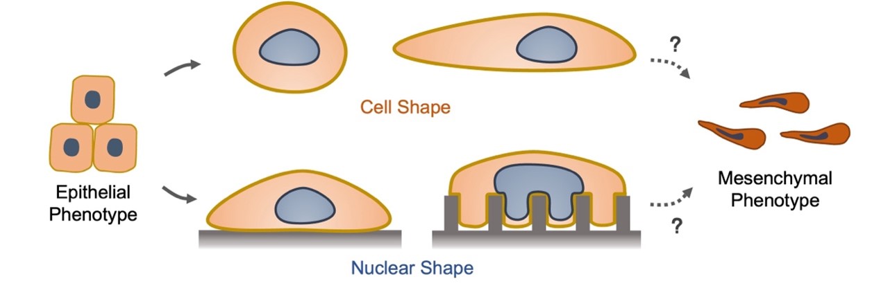 图1. 细胞外形与细胞核形状是否影响上皮-间质转化的科学问题示意