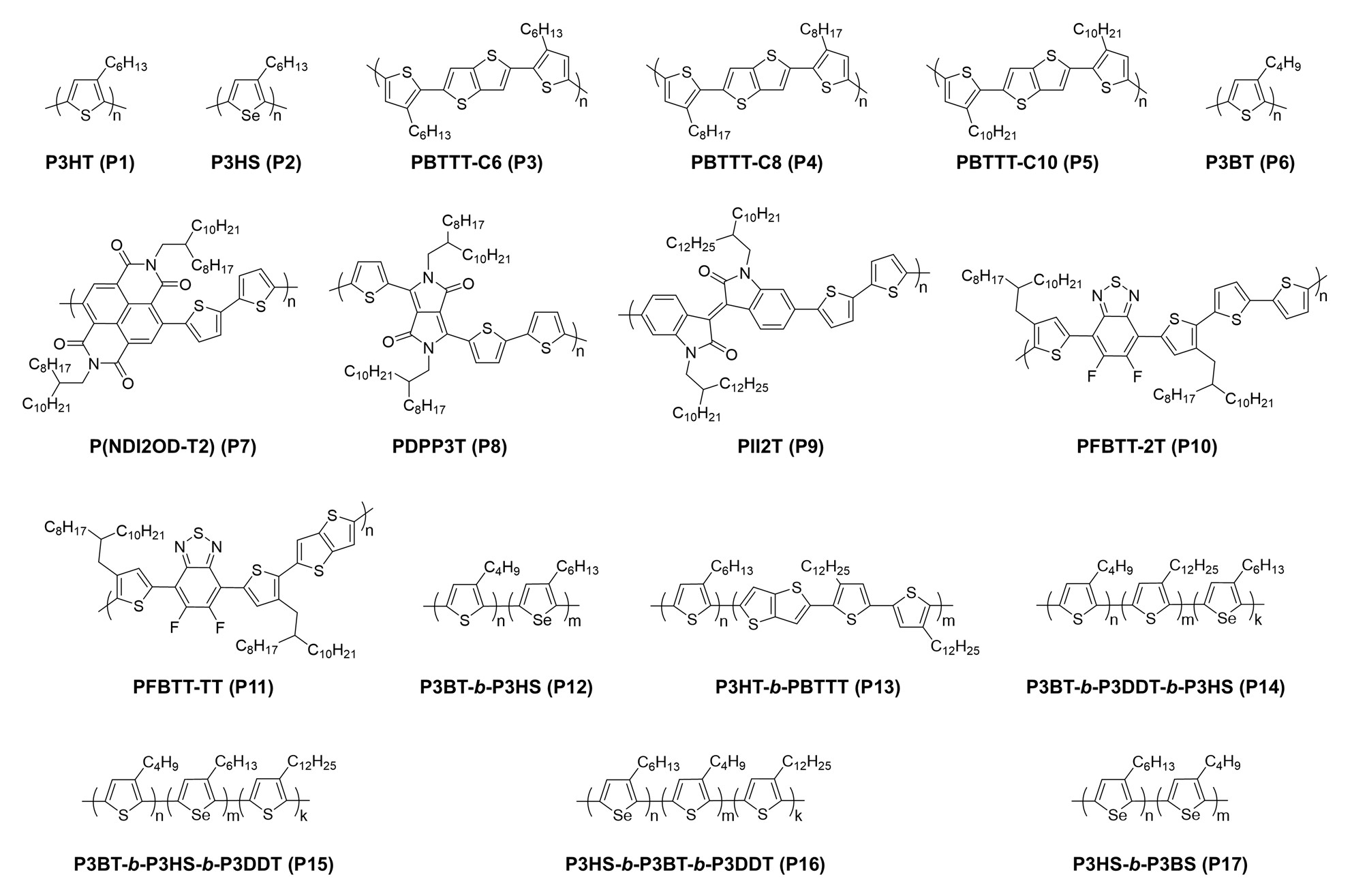图1. 共轭高分子具有代表性的凝聚态结构(晶型、结晶取向和共晶结构等)的调控及其载流子传输性能。