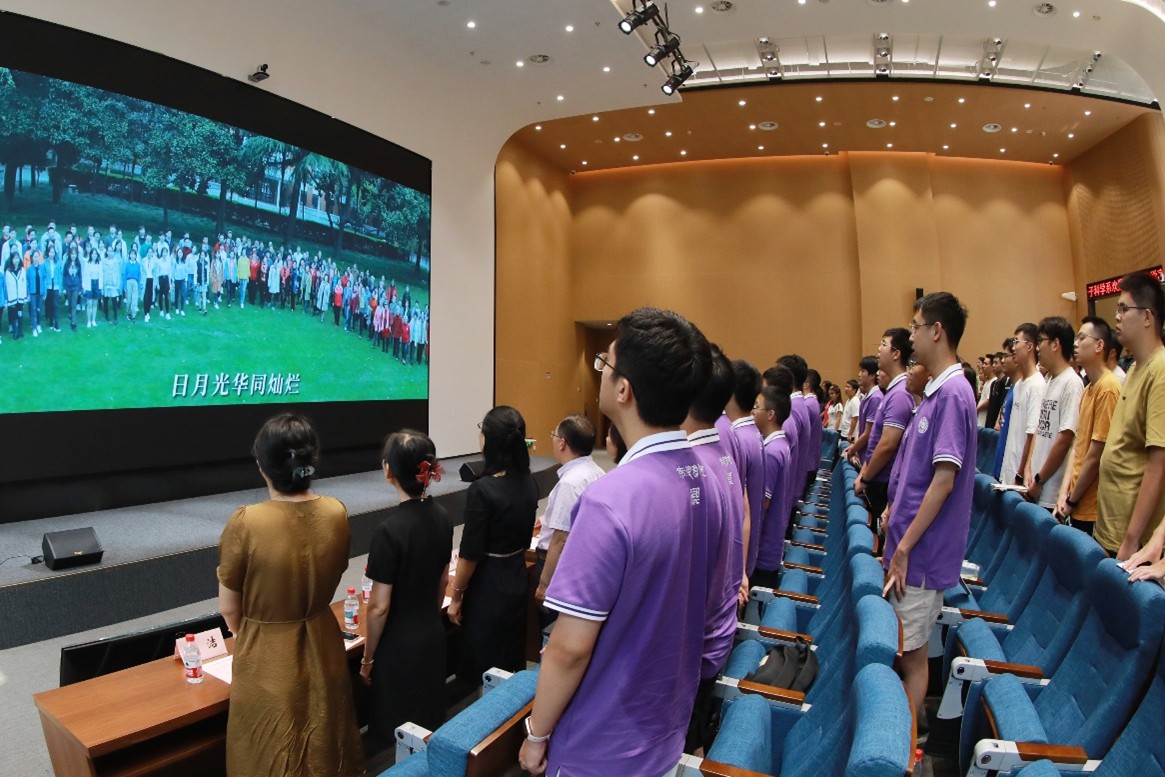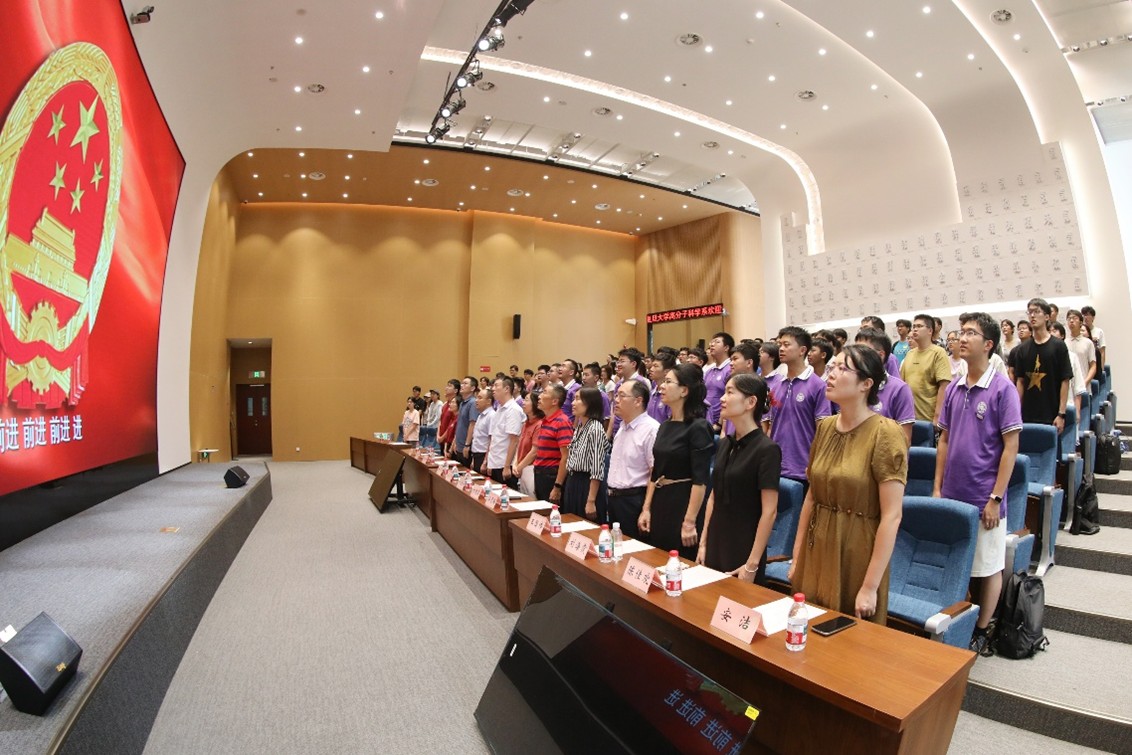 大会在庄严的国歌声中拉开帷幕。首先,大会播放了系研究生会、学生会精心制作的迎新短片。Cool18 的新同学们展现了热情洋溢的精神面貌,目光中充满了对于求知的热情,也充满了探索未知科研世界的勇气。