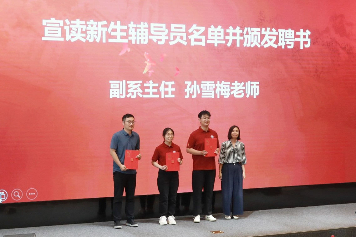 大会还举行了新生辅导员和本科班导师长聘书颁发仪式。副系主任孙雪梅老师宣读新生辅导员名单,并为他们颁发聘书。2025级博士班辅导员桑玉涛老师发言,他分享了科研过程中的宝贵经验,主要围绕科研起步、与导师相处、如何面对压力三个方面,帮助同学们更好地适应学术生活,展开学术研究工作。随后,孙雪梅老师宣读本科班导师长名单,并为导师长陈茂老师颁发聘书。陈茂老师从生活和科研两方面出发,用三个“不要”和三个“要”来勉励本科生们:不要过于依靠老师的督促;不要忽视基础知识的学习;不要临近毕业再开始进行科研。相反,同学们应该要多去了解科研方向,要多去进行实验尝试,要多去思考大的问题。最后,他祝愿本科生们在大学四年的学习生活中能够收获知识、成长、友谊与无悔的青春。